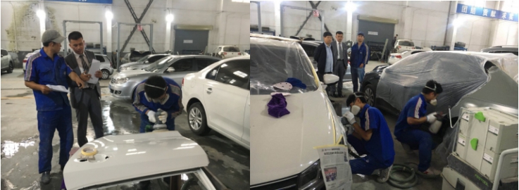 (物產(chǎn)汽貿(mào)公司 訊 崔燕飛、杜慶華/文攝)為進(jìn)一步提升公司售后維修人員業(yè)務(wù)水平,提高公司維修工人崗位技能與實(shí)際操作能力,從而更好的服務(wù)于客戶車輛的維修工作,為顧客安全出行提供有力保障。9月16日上午,總經(jīng)理助理、售后服務(wù)總監(jiān)杜慶華帶領(lǐng)售后管理人員,在朝陽車間對售后服務(wù)部即將轉(zhuǎn)正的4名漆工學(xué)徒進(jìn)行了現(xiàn)場考核。