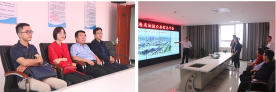 黨委書記、董事長王玉輝同志向考核小組介紹"三大園區(qū)"規(guī)劃建設