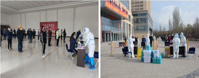 在疫情防控緊要時(shí)期,主動配合落實(shí)核酸檢測等防控措施。多頻次聯(lián)系大通縣疫情防控指揮部及北川園區(qū)管委會,于4月14日、4月17日開展兩輪核酸檢測行動。為做好本次核酸檢測工作,公司黨政領(lǐng)導(dǎo)班子高度重視,科學(xué)謀劃,與相關(guān)單位溝通銜接后,連夜加班在園區(qū)空曠區(qū)域設(shè)置檢測點(diǎn),方便核酸檢測工作;同時(shí)根據(jù)公司生產(chǎn)經(jīng)營實(shí)際,公司財(cái)務(wù)審計(jì)部、實(shí)業(yè)開發(fā)部人員、供銷部負(fù)責(zé)同志協(xié)同公司所屬各單位,密排人員在崗、離崗、休班情況,提前編制完成人員信息統(tǒng)計(jì)及分組排序表;歷經(jīng)全員密切配合,兩次共采集核酸檢測樣本2093個,保證了篩查應(yīng)檢盡檢、無一遺漏,及時(shí)排除風(fēng)險(xiǎn)。