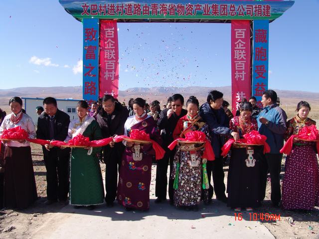 2011年10月16日,集團總公司在共和縣江西溝鄉(xiāng)元者村舉行"百企聯(lián)百村"捐建共和縣江西溝鄉(xiāng)元者村黨員活動室、科普文化室、醫(yī)療衛(wèi)生室和黑馬河鄉(xiāng)文巴村進村道路工程項目交接儀式。集團公司總經(jīng)理王玉輝、黨委書記白家林、紀委書記王仁芬、共和縣人大常委會主任尕瑪才讓、共和縣委常委、組織部長官卻南見以及集團"百企聯(lián)百村"活動領(lǐng)導(dǎo)小組成員、總部全體職工、捐建工程項目部工作人員、施工方代表和有關(guān)縣、鄉(xiāng)、村領(lǐng)導(dǎo)、村民代表60余人參加交接儀式。