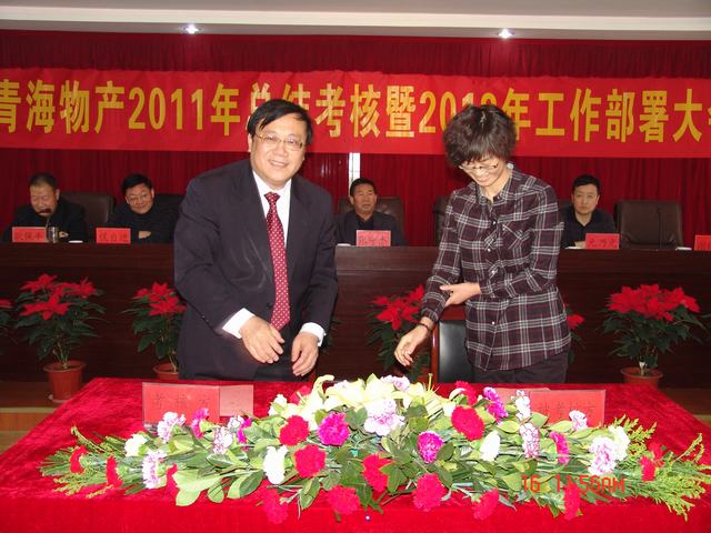 1月16日,集團(tuán)召開(kāi)2011年工作總結(jié)考核暨2012年工作部署大會(huì),省國(guó)資委領(lǐng)導(dǎo)蒞臨大會(huì)、集團(tuán)領(lǐng)導(dǎo)、各公司領(lǐng)導(dǎo)班子、總部全體員工及2011年度先進(jìn)個(gè)人參加了會(huì)議。集團(tuán)總經(jīng)理王玉輝作了題為《奮楫圖治夯實(shí)基,敦行致遠(yuǎn)續(xù)新篇,在"十二五"科學(xué)發(fā)展的大道上闊步前進(jìn)》的工作報(bào)告,黨委書記白家林作了題為《融入中心創(chuàng)先進(jìn),提升發(fā)展?fàn)幭蠕h,大力推進(jìn)青海物產(chǎn)集團(tuán)科學(xué)發(fā)展新跨越》的黨委工作報(bào)告.會(huì)上通報(bào)了集團(tuán)2011年完成省國(guó)資委下達(dá)的經(jīng)營(yíng)考核指標(biāo)情況及各公司主要工作成績(jī)和不足,對(duì)2012年工作任務(wù)及黨建工作進(jìn)行了安排部署。