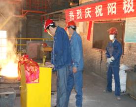2012年7月7日上午11點零19分,青海物產工業(yè)投資有限公司10萬噸電解鋁/年升級改造項目,簡易陽極組裝車間大門前鞭炮齊鳴。青海物產工業(yè)投資有限公司黨總支副書記、青海長春炭素有限公司總經(jīng)理王松華,公司常務副總經(jīng)理、項目副總指揮常海寧,工業(yè)投資和長春炭素公司副總經(jīng)理姜紅萍,公司副總經(jīng)理張秉瑜,總經(jīng)理助理范登福等公司領導和各車間、部室的職工出席了簡單的點火澆鑄儀式。王松華同志按下了點火按鈕鄭重宣布澆鑄正式開始。當中頻爐工將第一爐鐵水倒入抬包時,標志著新陽極組裝車間正式投產運行。